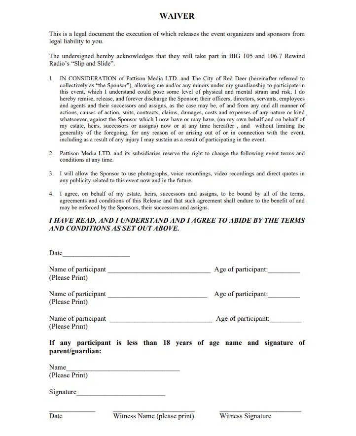 Want to get on the slides ASAP? Print and fill out the waiver below ahead of time and bring it with you the day of the Slip ‘N Slide!